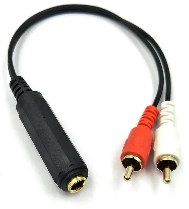 FOR 6.35 mm 1/4 inch TRS Stereo Jack Female to 2 RCA Male Plug Y Splitter Adapter Cable 25cm/10inch (635F-2RCAM)