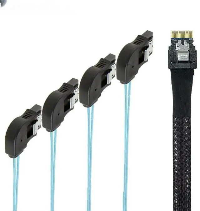 FOR High speed PCIE Slimline SAS 4.0 38P SFF-8654 4i to 4 SATA Adapter Cable with 7P Right-Angle Female Con tor