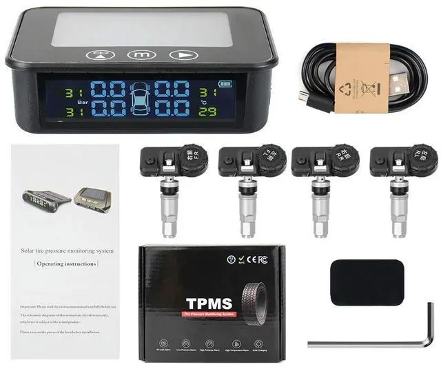 • FOR TPMS Touch Switch Auto Tire Pressure Monitoring Tyre Temperature Alarm Warning System Tyre Pressure AN-11 Smart Solar Car
