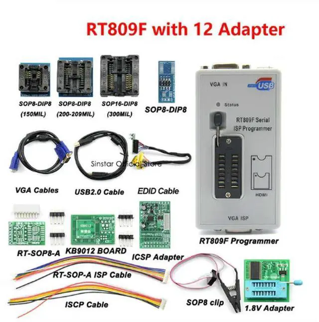 • FOR RT809F Serial ISP Programmer with 12pcs adapters lcd usb programmer Repair Tools 24-25-93 serise IC Test Clip