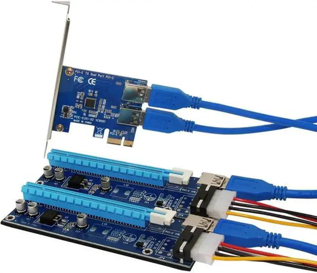 PCIe Riser Card 1 to 2 PCI-E 1X to PCI-E 16X Slot With USB 3.0 Power Cable Mining Adapter Conveter for BitCoin