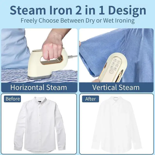 Functions as both a traditional dry iron and a garment steamer. Plug in to iron normally, or press the steam button for instant steaming. One tool handles both daily home use and travel needs.
