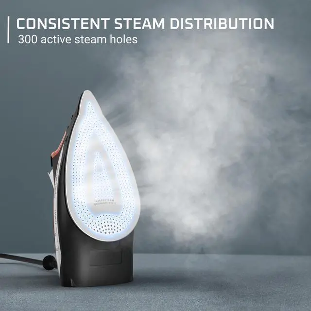 With over 300 holes, this unique stainless-steel soleplate provides excellent steam coverage for unmatched efficiency and easier ironing sessions.