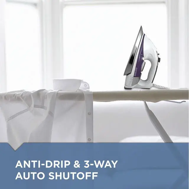 This high-performance iron delivers professional results by featuring a powerful steam rate that blasts through wrinkles quickly and effectively. The 10-foot cord offers convenient mobility, the heavy-duty stainless steel soleplate provides smooth glide and high durability, and the separate steam and temperature controls let you customize settings for all types of fabrics. Plus, the 3-way auto-shutoff feature gives peace of mind with every use.
