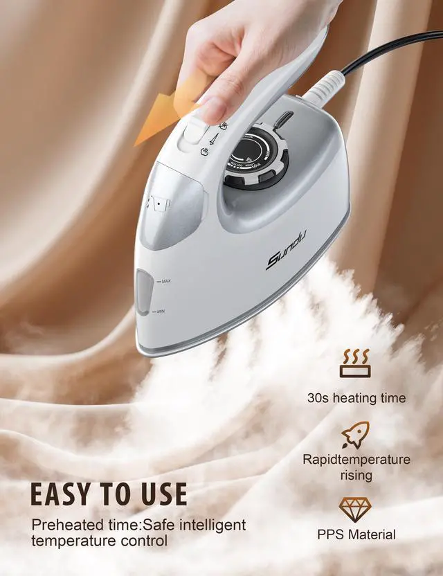 [Campact Size Design]Dimensions: 6.85" X 6.0" X 3.62", Weight: 1.6 lbs.Product Content:Sundu 1000W Steam Iron x 1,Measuring Cup x 1,User Manual x 1,Cloth Bag x 1. It allows you to take it anywhere in the world while traveling. The small iron is the best tool for sewing, appliqué, patchwork, quilting, rag doll construction, and pressing flowers because it fits perfectly in small spaces.