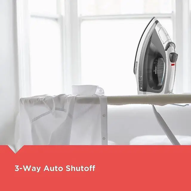 3-Way Auto Shutoff - For added peace of mind, the iron shuts off when left unattended for 30 seconds on its side or soleplate, and after 8 minutes on the heel rest.