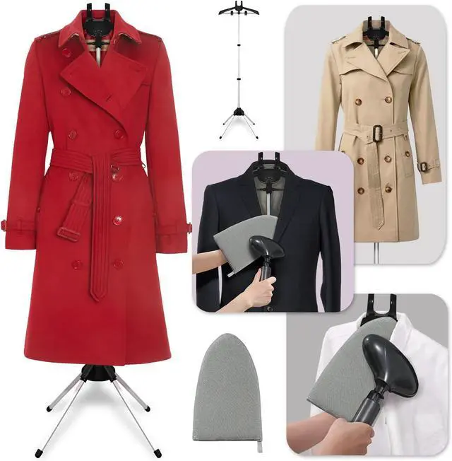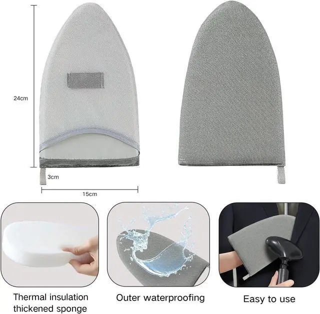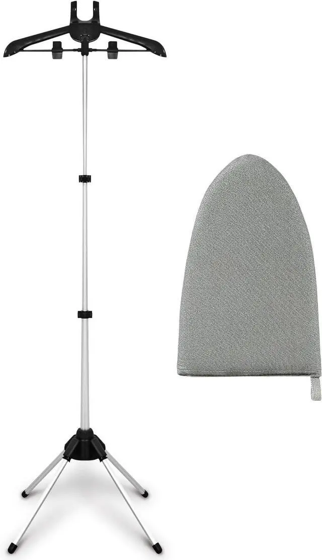 Garment Hanger & Ironing Glove - The garment hanger with a mini ironing board ( Ironing steamer glove color Grey) is a great helper for steaming clothes. The standing steamer hanger can be used as a support for clothes falling vertically, makes it easier to iron your clothes, the steamer glove can as a ironing board and also protect your hands