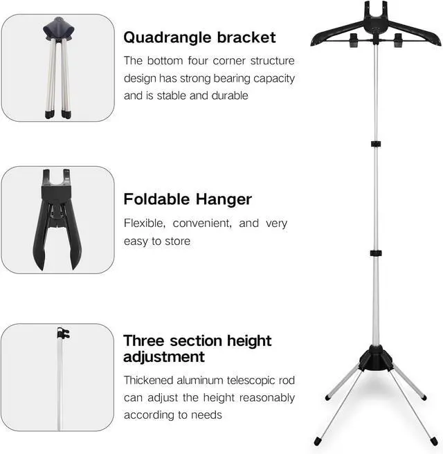 Sturdy & Adjustable - The garment rack is made of metal material which is reliable and sturdy, four-legged support can make the steam rack keep stable. The garment hanger is also adjustable to 3 heights: 32' ', 48' ', 62' ' to suit your needs, very convient