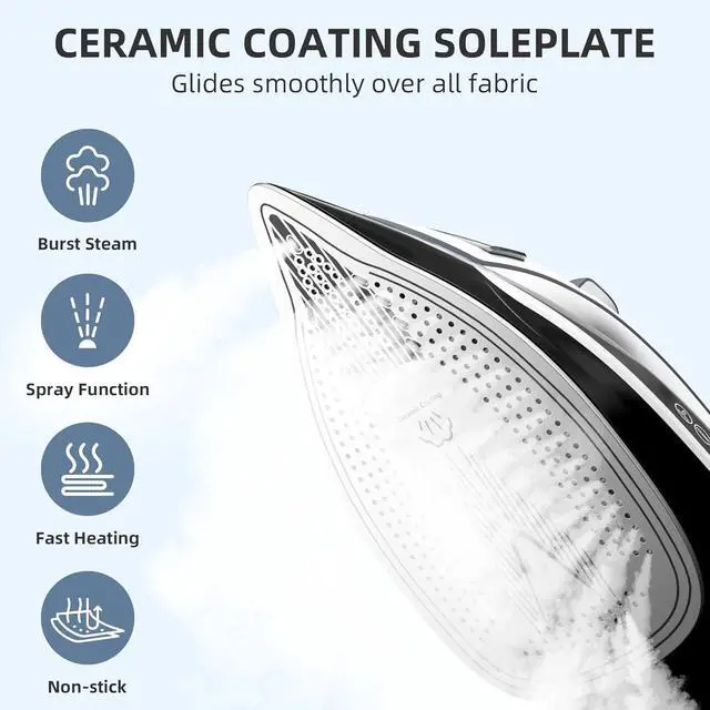 [20s Fast Heating] The 1700W iron' s high powered heating element ensures even heat distribution across the soleplate, providing fast and efficient preheating, and heats up in just 20 seconds