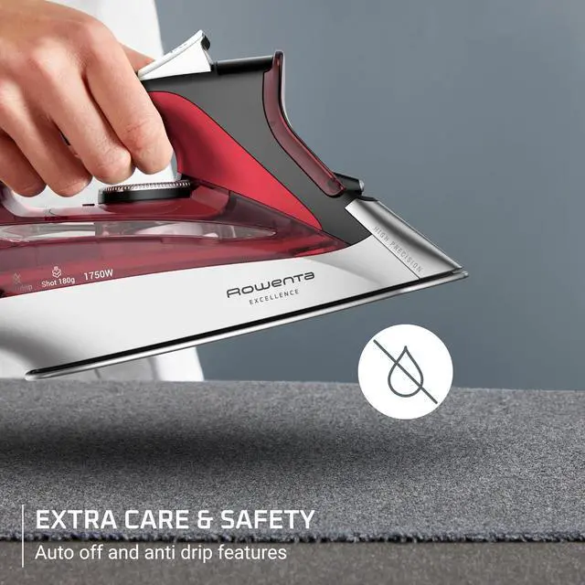AUTO SHUT-OFF & ANTI-DRIP: Designed for safety and mess-free ironing, this Rowenta Focus Steam Iron with automatic shut off powers down when left unattended and features an anti-drip system to prevent leaks and water stains