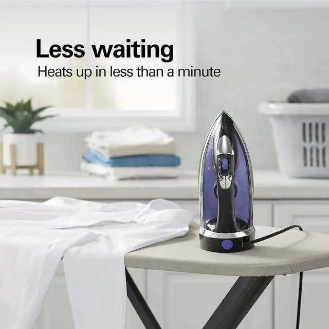 LESS WAITING HEATS UP IN LESS THAN A MINUTE: This retractable cord iron heats up quickly and evenly so you can remove wrinkles from every kind of fabric, from the thickest cottons to the thinnest silks and synthetics.