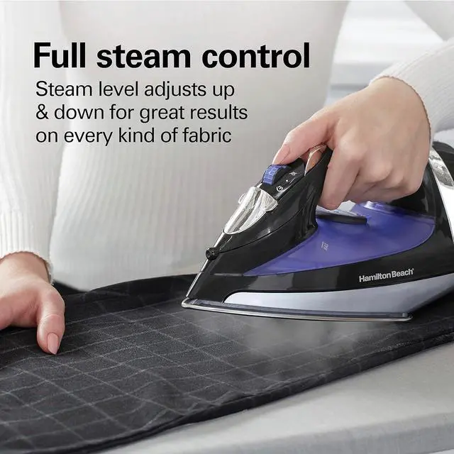 FULL STEAM CONTROL: The steam level adjusts up and down for great results on every kind of fabric. Turn the steam switch to the highest steam to release stubborn wrinkles or turn it off to dry-iron delicate fabrics.