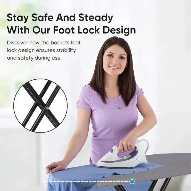 Heat Resistant Iron boardThe pad of the ironing board full size is made from high quality materials to ensure it can withstand the heat and pressure of regular ironing. With a smooth and flat surface, the wide and long pad of the iron board provides a perfect platform for all your ironing needs.