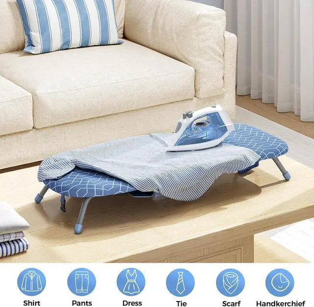IRON STORAGE- Table Top Folding Ironing Board with Iron holder to help you neatly organize your dorm room and make it look aesthetically pleasing