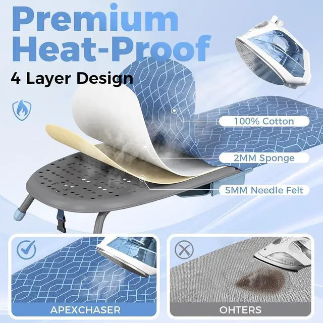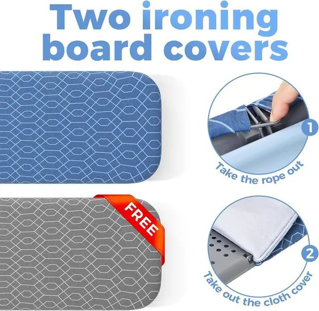 TWO REPLACEABLE COVERS- Ironing board covers are made of extremely scorch and stain resistant cotton fabric100 % cotton ). It provides exceptional durability and super-smooth ironing