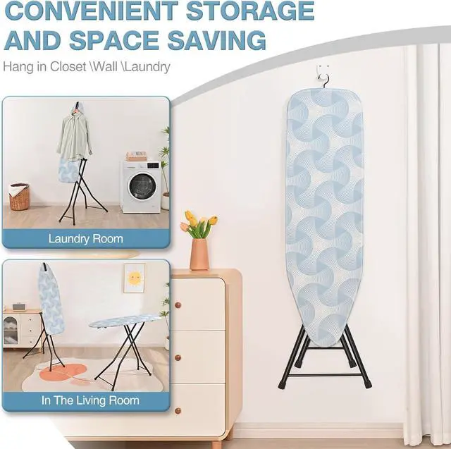 Space-Saving Foldable Design with Hook This iron board effortlessly collapses and includes a wall-mount hook, making the Ironing Board with Iron Rest ideal for apartments and small spaces