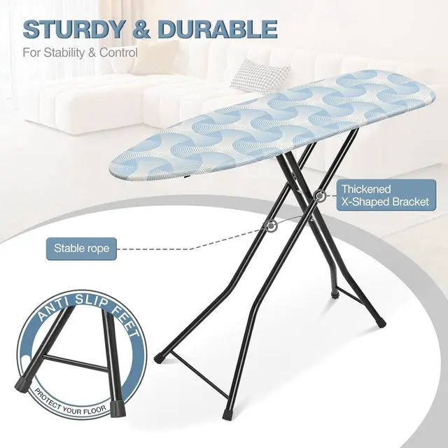 Heavy-Duty Steel X-Frame Engineered with heavy-duty steel legs and an X-frame base for wobble-free stability, even during vigorous ironing sessions. Non-slip rubber feet protect floors and prevent shifting