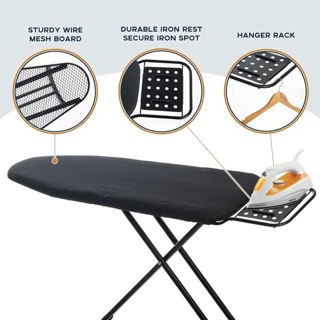 Sturdy and Stable: The finer welded steel frame makes the iron board full size very steady and less wobbly; Also, the metal mesh plate is flat and the board is thick and more stable