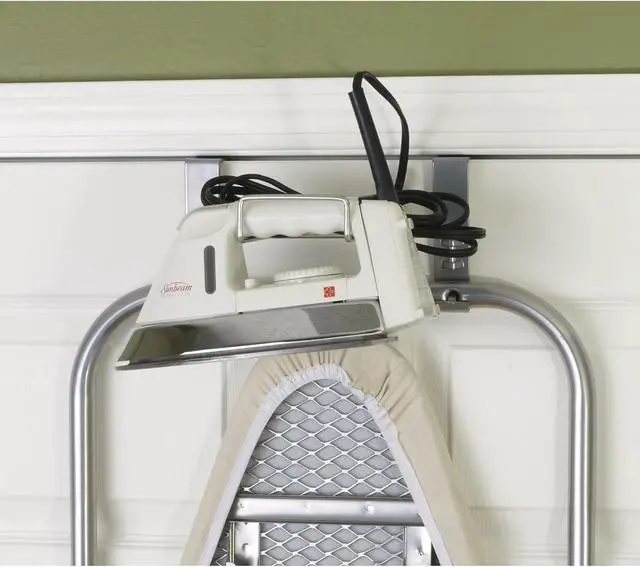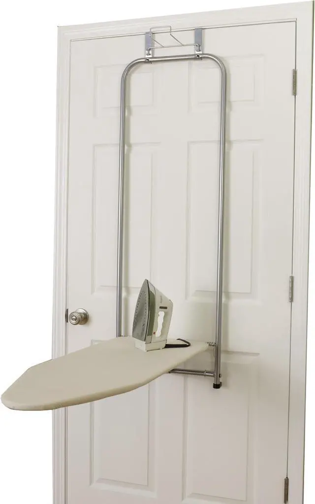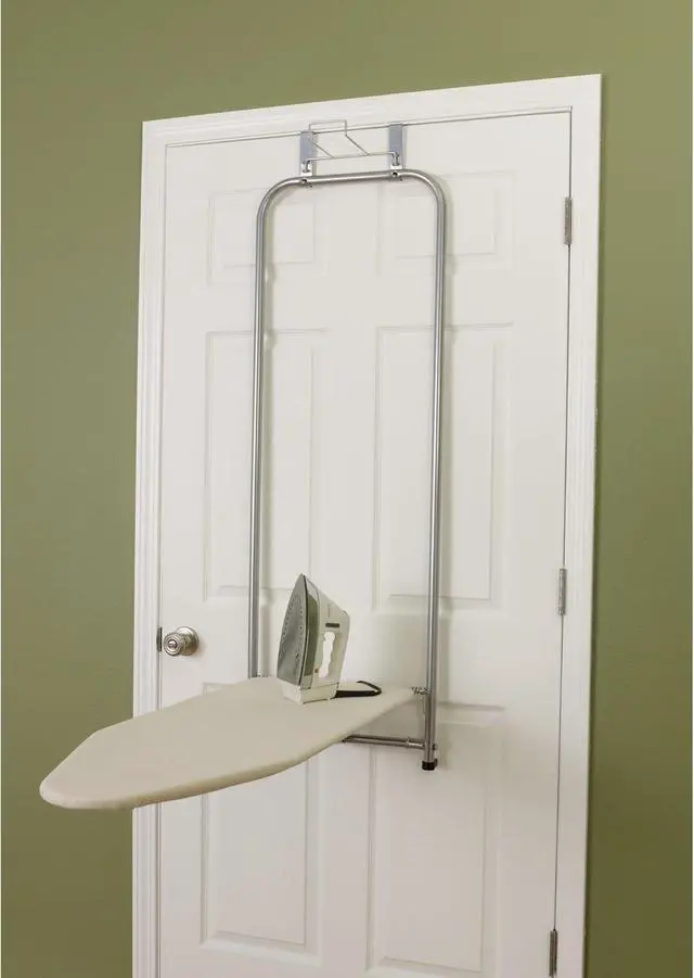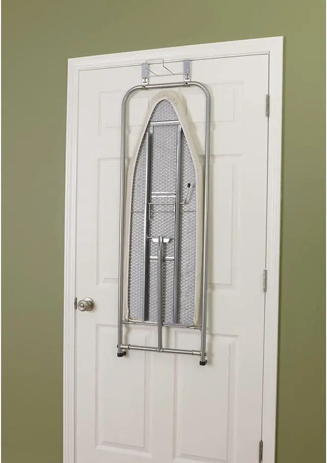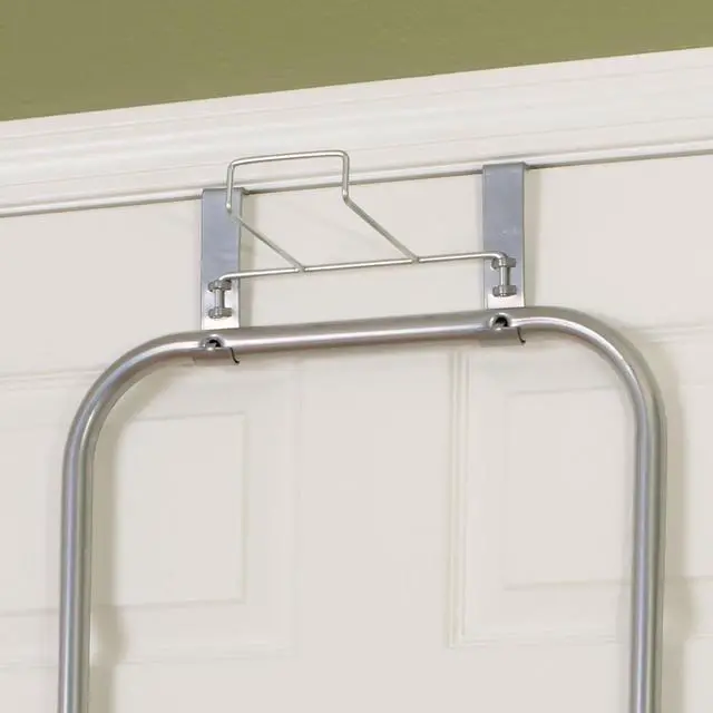 BUILT IN U-HOOK iron holder at the top of the board
