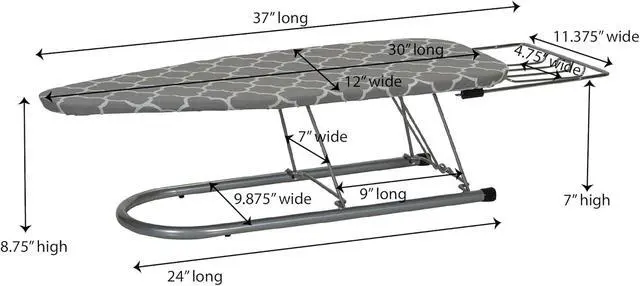 Product Dimensions Open: 5H x 12W x 36.5L (with iron rest);