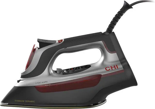 PREMIUM MATERIALS WITH MODERN STYLE. The titanium-infused ceramic soleplate is ultra-strong and scratch-resistant. Matte chrome accents and a sleek design give this clothing iron a polished look.