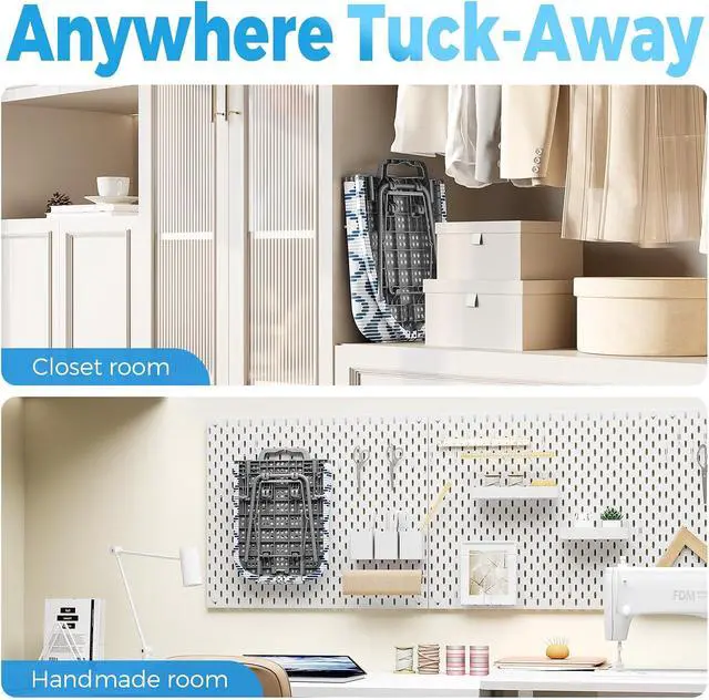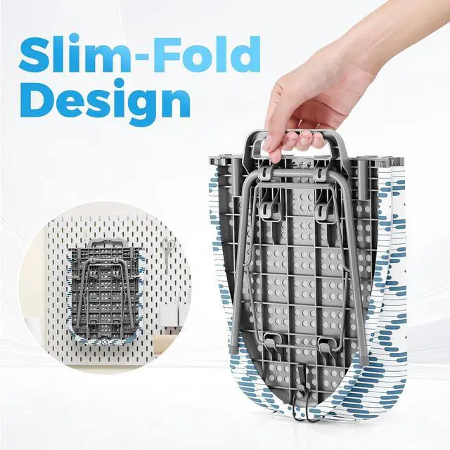 Foldable and Space-Saving: KINGBOARD compact ironing board is specially designed to save space. After folding, it measures 12" x 16.5 " fits anywhere where space is limited. Its own hanging hook, easily hangs over any standard door, also can storage in a closet. Handle design is easy to carry wherever you needed
