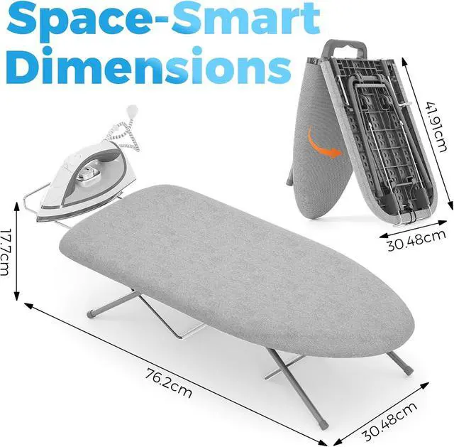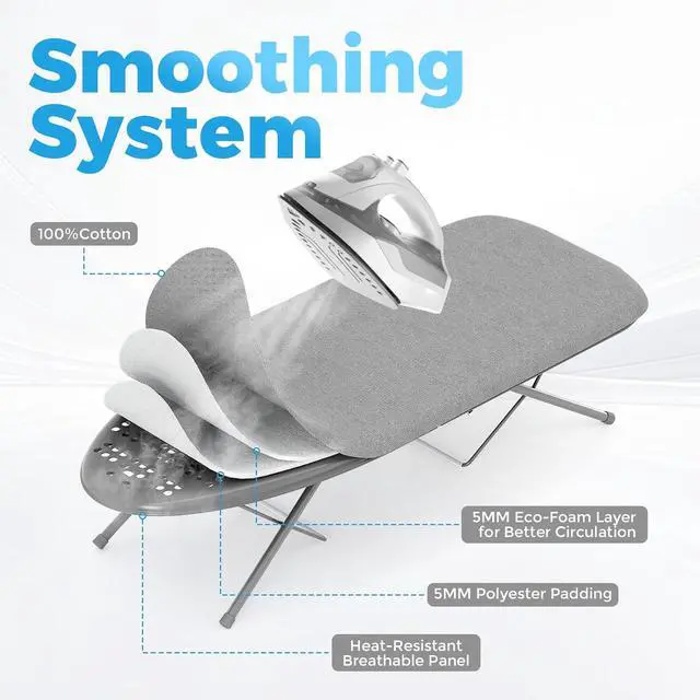 Heat-Resistant Cover: Our tabletop ironing board with padded felt underlay and 100% cotton cover, effectively preventing being damaged due to high temperature during ironing, ensuring long-term and stable use. Flat and smooth cloth cover without any grooves for wrinkle-free clothing, is great ideal for suit, dress, collared shirt or other any garment