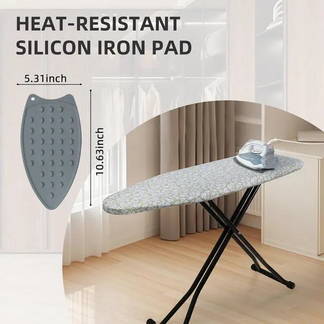 Dustproof Cover&Silicone Ironing Pad Equipped with high-temperature resistant silicone ironing pad, which can move freely and adapt to different clothing ironing needs; Comes with a dust cover to protect the ironing board during storage, avoiding dust accumulation and keeping it clean.