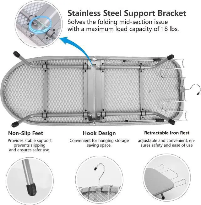 Built to Stay SteadyFeatures reinforced steel construction that supports up to 18 lbs5 lbs more than most tabletop boards. The sturdy frame wont wobble, even when pressing heavier items like jeans or jackets