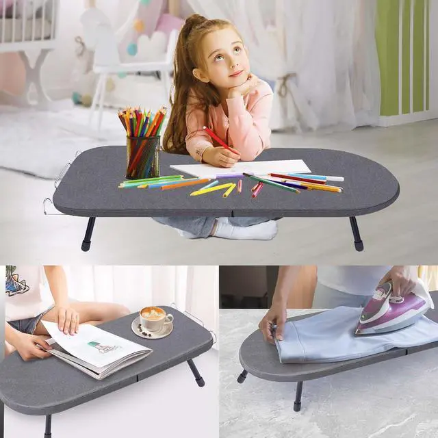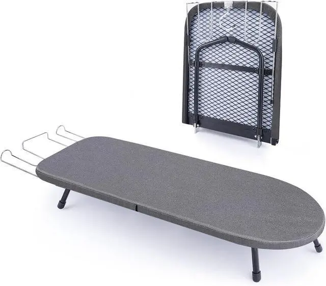 Compact & Portable DesignOur small ironing board tabletop is perfect for small spaces, measuring 32×12×6 inches when open and folding down to just 16×12×2 inches. The included iron holder adds convenience, making it ideal for apartments, dorms, or travel.