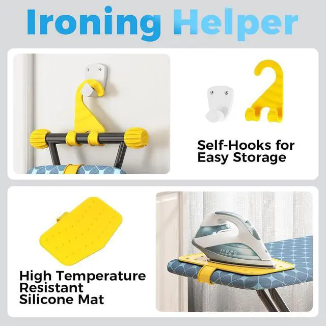 Adjustable Ironing Board: Customize your ironing experience with 7 height settings, ranging from 27 to 34 inch, Whether you are ironing while standing or sitting, you can find the most suitable height for yourself, minimizes strain on your back and arms. Each level boasts a secure slot lock, prevents accidental opening or closing, ensure the safety of the ironing process