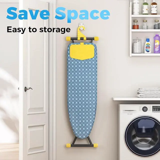 Lightweight & Easy Storage: Although the ironing board has a sturdy structure, but it is lightweight and foldable, hook design allows for easy hanging. Folds flat perfect for narrow spaces such as the corner of a wardrobe, under the bed, or by the wall, without taking up too much indoor space. It is convenient for you to store it properly when not in use, keeping your home tidy
