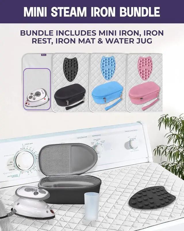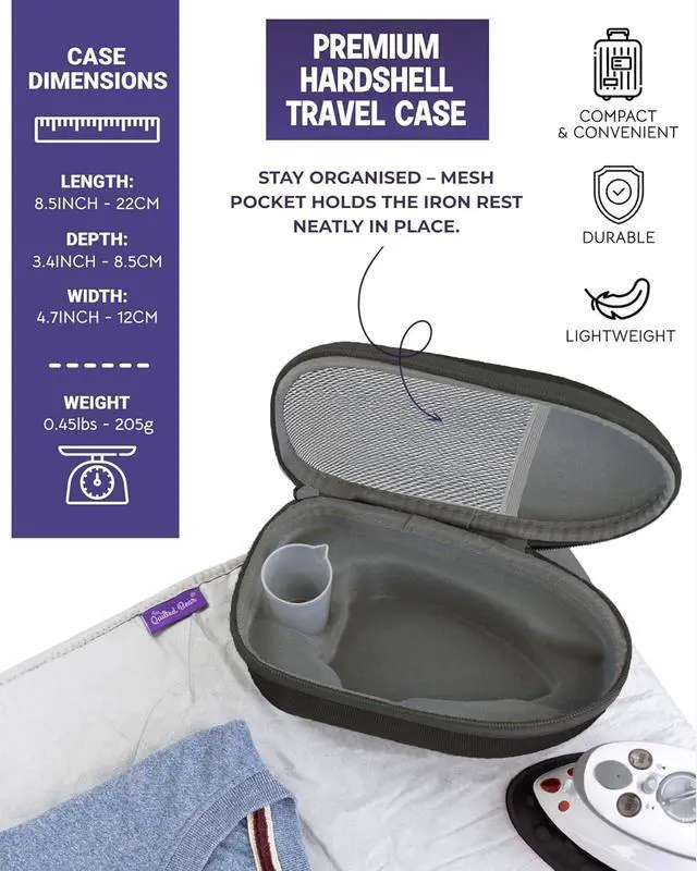 Complete Travel & Craft Iron Bundle: Includes a lightweight colour-matched mini steam iron, hard-shell case, silicone rest, and travel ironing mateverything you need for wrinkle-free clothes or quilting on the go.