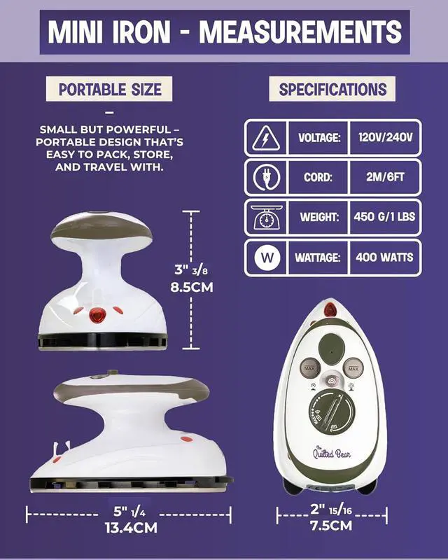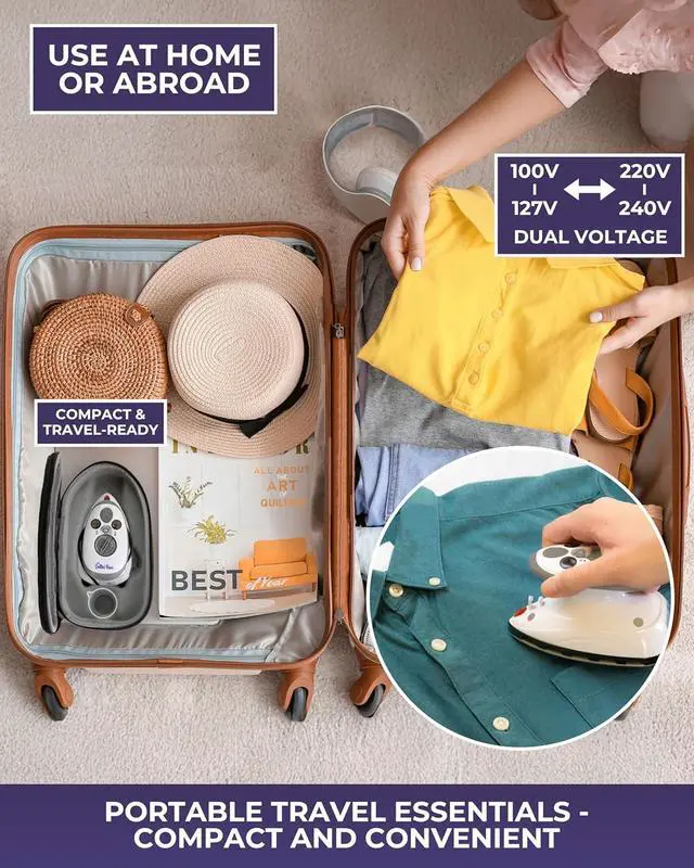 Powerful Steam Iron: Dual voltage (120V/240V), fast heat-up, and a ceramic-coated soleplate with 149446 °F range give you full-size clothes iron power in a portable iron, small iron for clothes design.