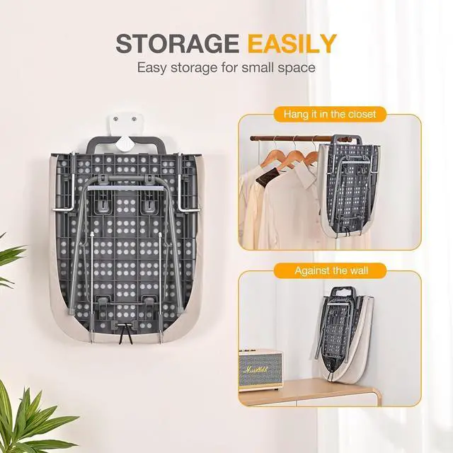 Amazing Space-Saving: Space-saving compact iron board with its own hanging hook, easily hangs over any standard door, also can storage in a closet, against a wall, even can under couch or bed. Handle design is easy to carry wherever you needed