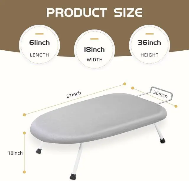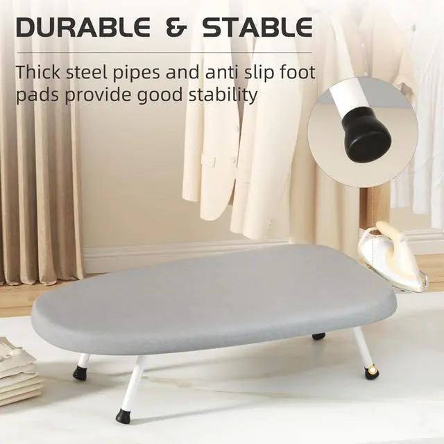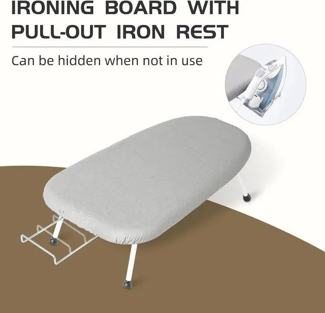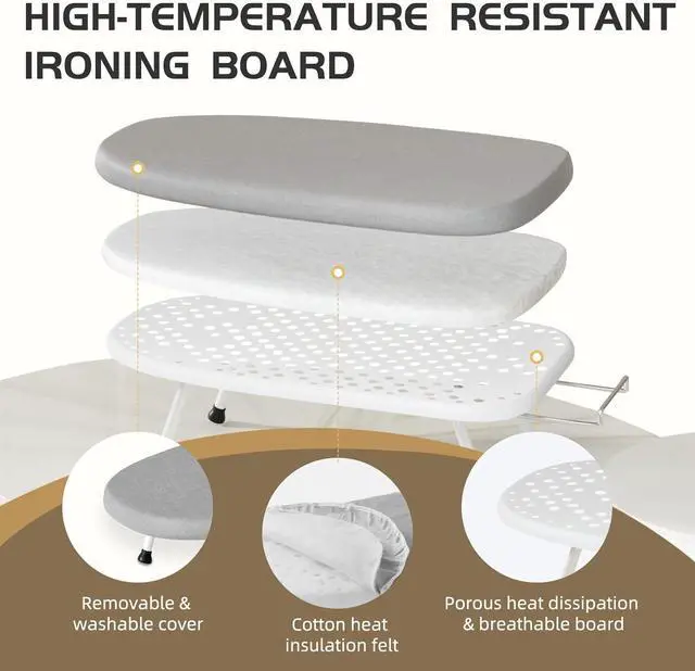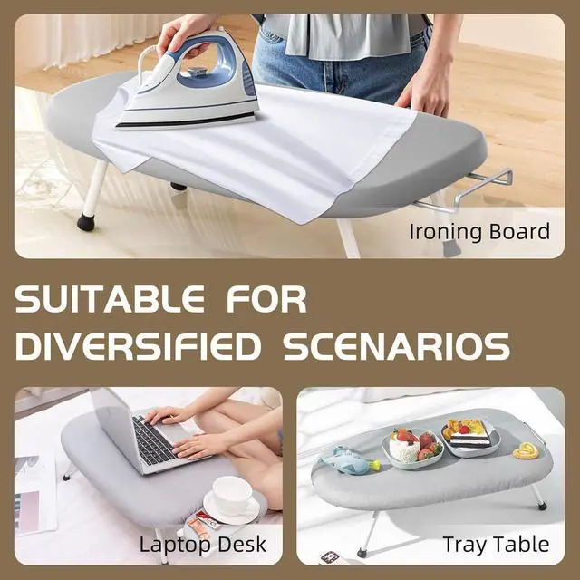 Efficient & Time-Saving The thickened sponge layer and bottom plate hole design of the tabletop ironing board provide uniform thermal conductivity, accelerating ironing efficiency.