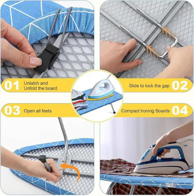Easy Ironing and Easy to clean: Removable cloth cover for easy cleaning, when opened the Tabletop Ironing Board, the cushioned surface is completely flat and seamless, and the metal mesh plate is matched with a heat-resistant cotton cover and pad to help dissipate heat faster