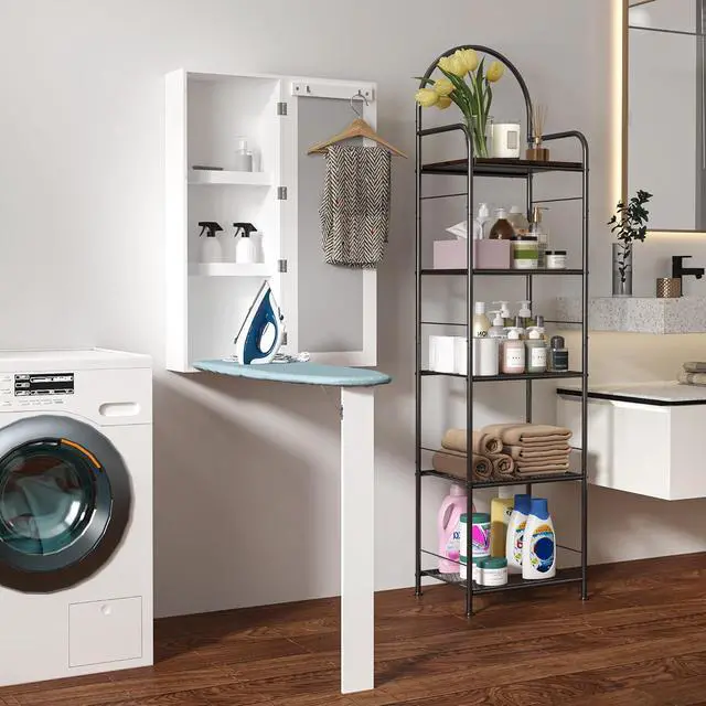 [Space Saving]: Just put down the support leg and iron the clothes. The safety latch secures the ironing board in the hidden cabinet when not in use, preventing it from tipping over. It saves time and space for ironing, makes ironing simple and efficient