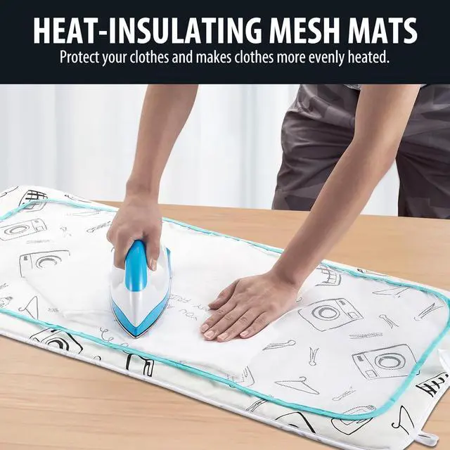 INSULATION PROTECTIVE MESH: This table top ironing mat comes with a heat insulating and breathable net, meticulous and uniform mesh density makes clothes more evenly heated during ironing, effectively protects your clothes, especially dark clothes and expensive clothes