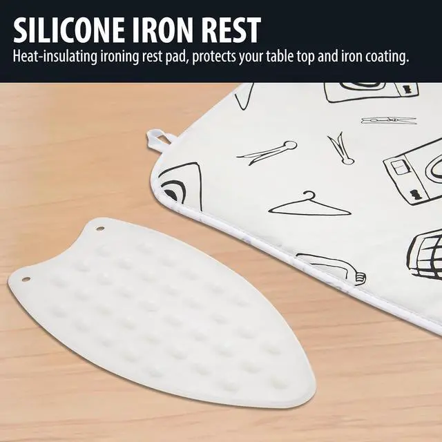 SILICONE IRON REST PAD: The increased silicone bulges are good for heat dissipation, protect the iron coated and tabletop. What' s more, the silicone pad is anti slip, it will keep your iron in place when you don' t need it
