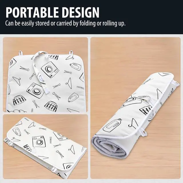 Size: 39.4 x 18.9 inches (L*W). Foldable ironing mat can be ironed in any platform place, such as washer dryer, countertop. Easy to carry and store. Suitable for dorm room, apartment, RV or other smaller living space. Say goodbye to the bulky ironing board