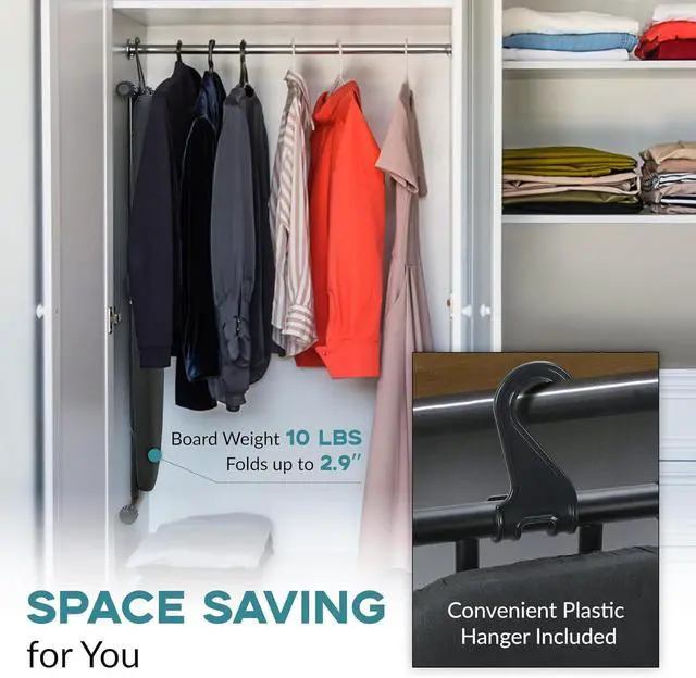 Space-Saving Design: The ironing board wide can collapse into a compact size for effortless storage, fitting neatly into tight spaces or closets when not in use, perfect for dorms, apartments or small laundry rooms