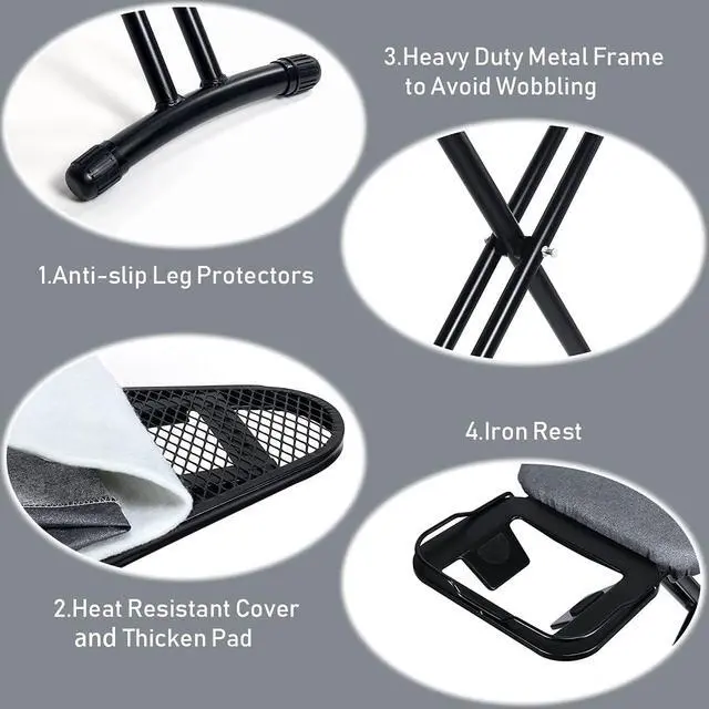 Ironing Boards with Iron Rest: Iron rest with premium silicone pads, it' s better to keep a good heat dissipation, can help to eliminates wrist fatigue when overusing