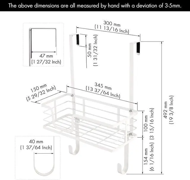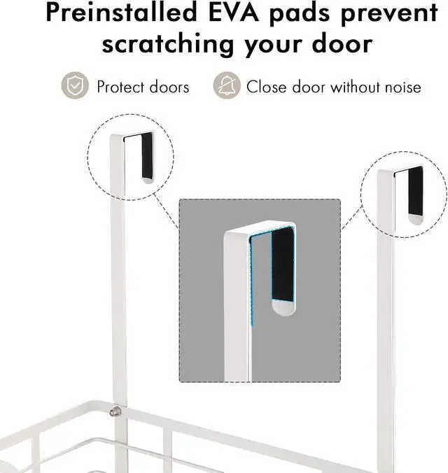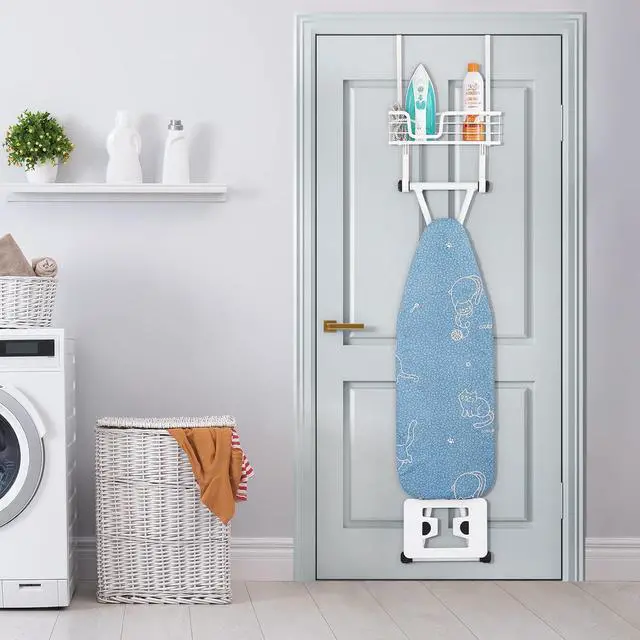 Protect Doors & Easy to Install: The EVA adhesives that stick under door hooks prevent scratching the door and keep it opening and closing smoothly. All hardware is included. Fix the basket to door hooks and install bottom hooks according to your ironing board.
