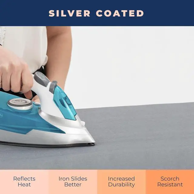 IRON FASTER AND BETTER WITH REFLECTIVE HEAT- Silver coated top layer reflects the heat of iron back to the clothes so you achieve perfect and wrinkle free clothes in a fraction of time. Its like having the iron heat on both sides of your clothing at the same time. It also absorbs less water than regular covers. Youll notice how our ironing board covers eliminate the creases and annoying folds.