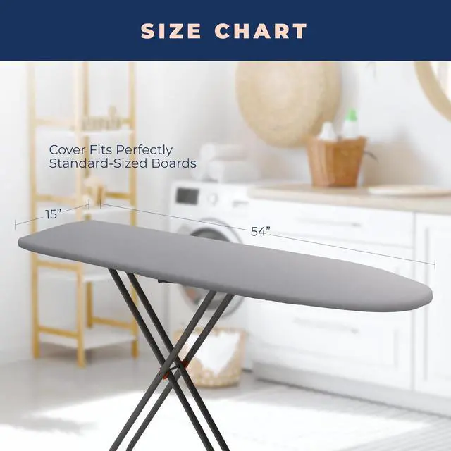 GENEROUSLY SIZED AND EASILY TAILORED TO FIT A WIDE RANGE OF BOARDS - The 15 inch x 54 inch cover fits all standard sized ironing boards. It is also designed to fit boards that measure 52 to 54 inch in length and 13 to 15 inch in width. One size does not always fit all! Please measure your board before purchase.