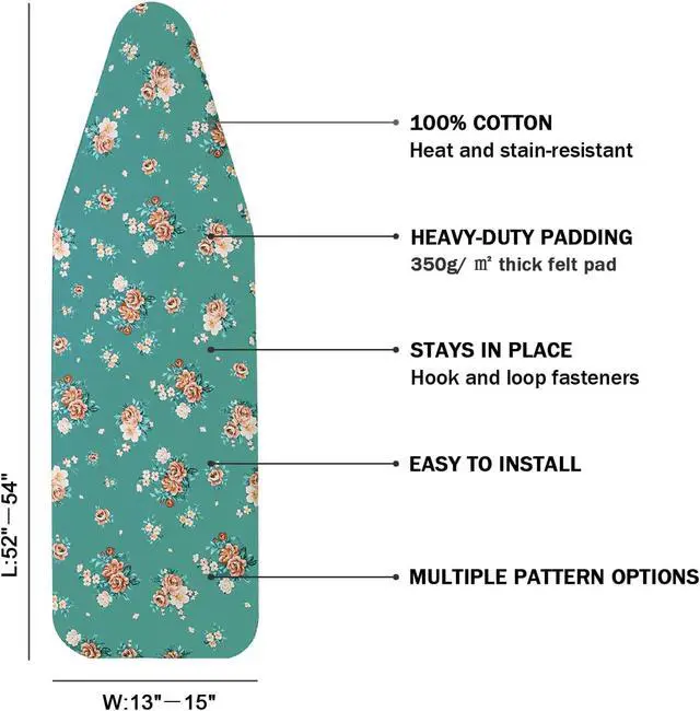 4. CUT IRONING TIME IN HALF WITH HEAT REFLECTIVE TECHNOLOGYBreathable Cotton of Top layer Helps on a Great Deal to Reflect a huge Part of the Heat Back to the Clothes, Greatly Reduce Ironing Time While Obtaining Wrinkle-free Clothes, It also Absorbs Less Water Than Regular Covers By Its Repellent Characteristics. More Steams to Clothes and Less to the Cover for a Better Wrinkle-free.