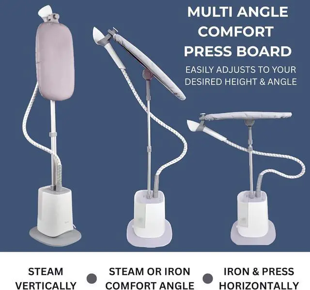 DELUXE ROTATING COMFORT BOARD Built-in ironing board rotates to 3 angles for comfortable, supported steaming from any positionprofessional results at home.