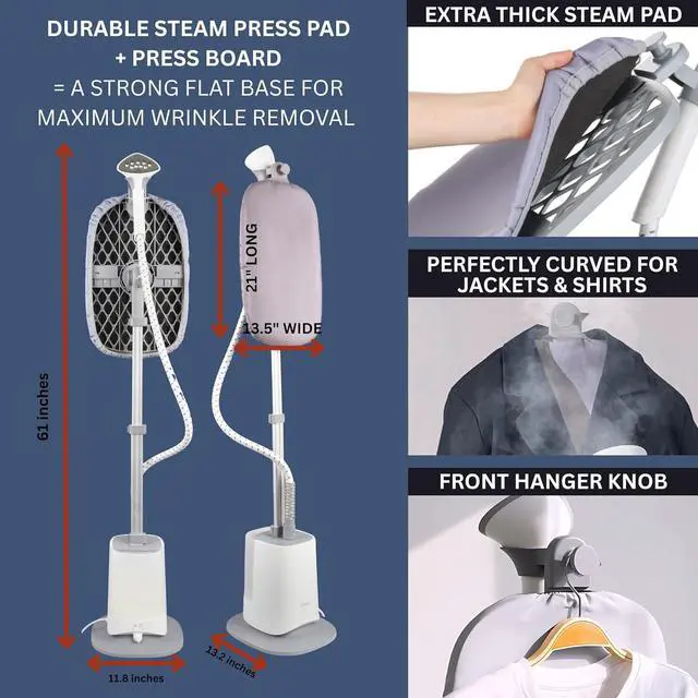 POWERFUL 1500W CONTINUOUS STEAM Delivers strong, consistent steam to quickly smooth wrinkles and refresh clothing, drapes, and upholstery.