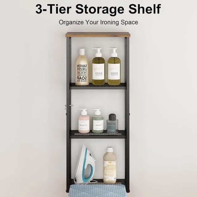 Spacious 3-Tier Storage: Designed with a practical 3-tier storage rack, this ironing boards provide not only a space for your clothes but also ample room to store your iron, accessories, and other household essentials. Keep everything neatly organized and within arms reach for a hassle-free ironing experience